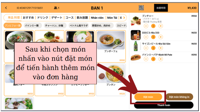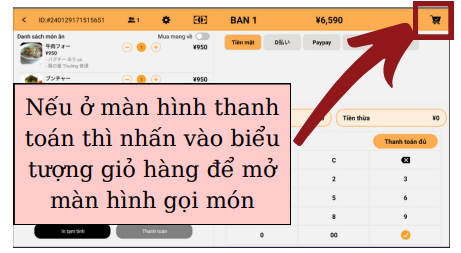 Gọi món từ máy tính tiền