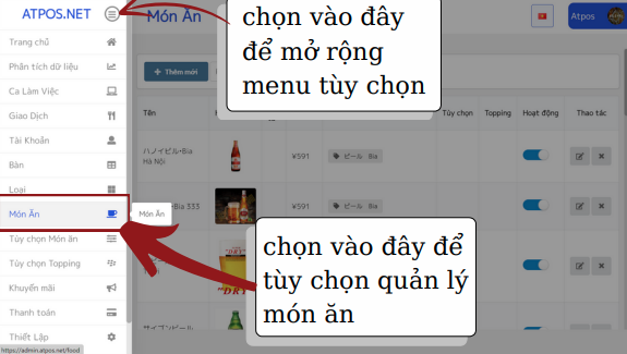 Bước 1: Truy cập vào app quản lý hoặc website quản lý https://admin.atpos.net/