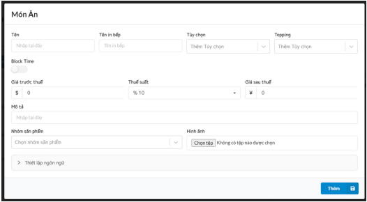 Sau khi điền đầy đủ thông tin. Nhấn vào nút để thêm món mới vào đanh mục đã chọn.